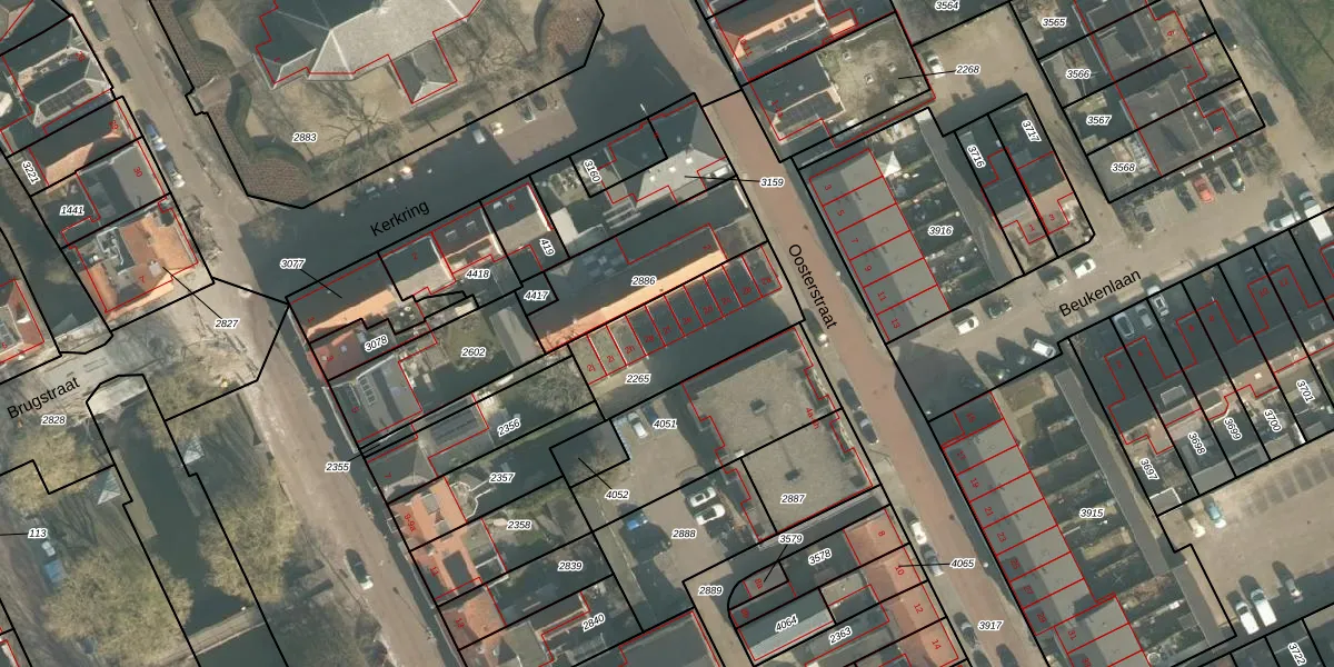 Het perceel waarop Oosterstraat 2-f staat heeft een oppervlakte van 442 m². Dit is een groot perceel. De perceeloppervlakte wordt geregistreerd door het Kadaster. Gedetailleerde informatie over de maten van dit perceel kunt u vinden in het rapport Kadastrale kaart met maatvoering van Oosterstraat 2-f.