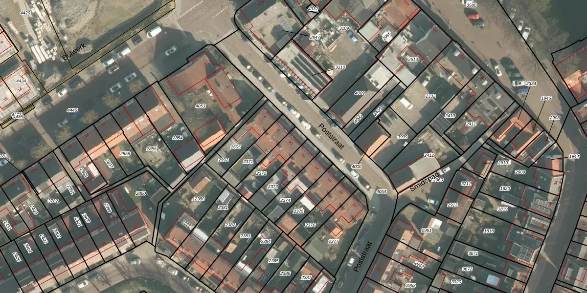 Gebruik de zoekbalk of klik op een perceel voor informatie over de adressen binnen dit perceel.