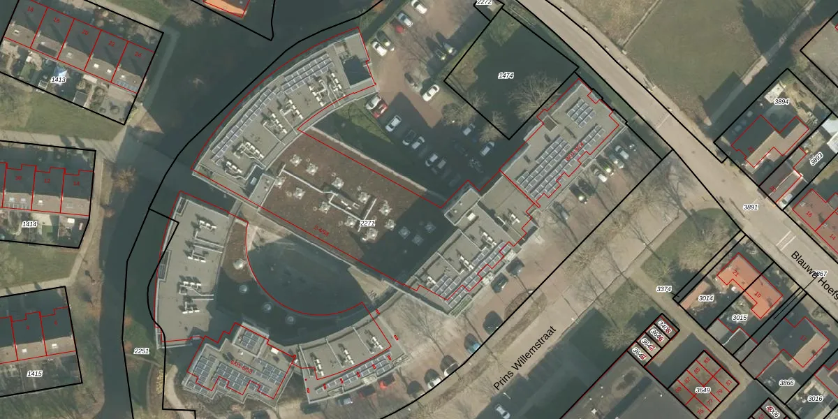 Het perceel waarop Prins Willemstraat 2-03 staat heeft een oppervlakte van 8264 m². Dit is een zeer groot perceel. De perceeloppervlakte wordt geregistreerd door het Kadaster. Gedetailleerde informatie over de maten van dit perceel kunt u vinden in het rapport Kadastrale kaart met maatvoering van Prins Willemstraat 2-03.