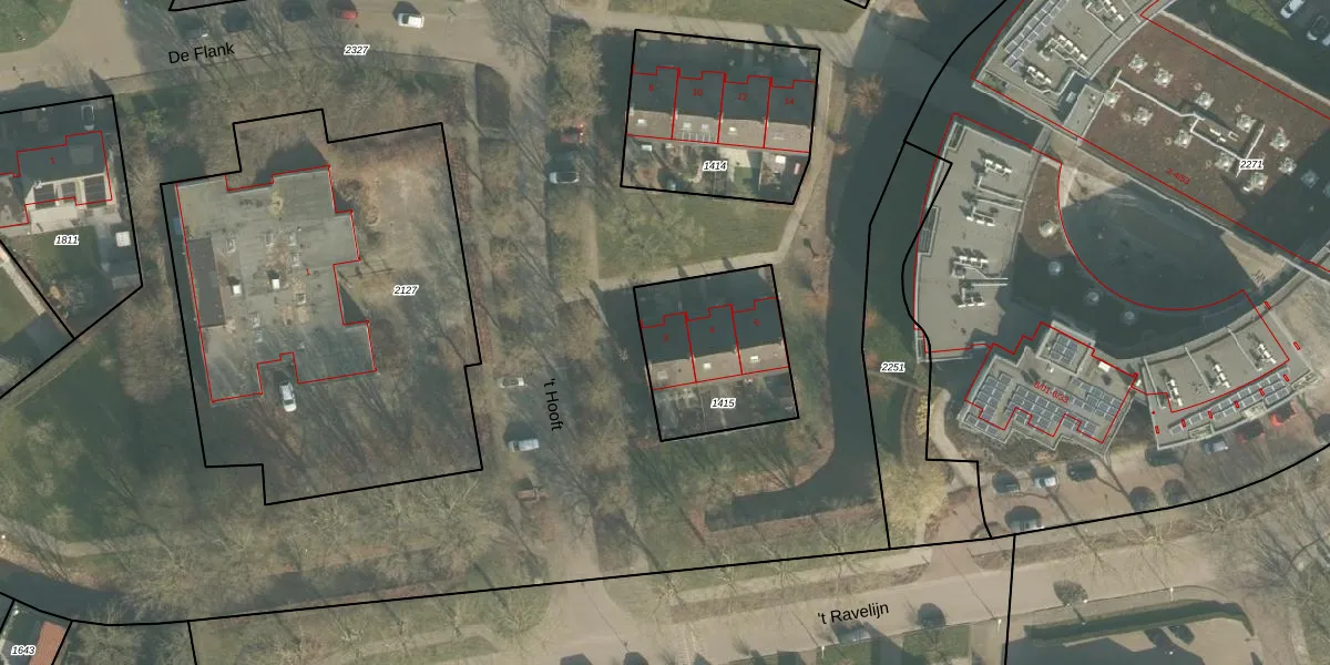 Het perceel waarop 't Hooft 2 staat heeft een oppervlakte van 496 m². Dit is een groot perceel. De perceeloppervlakte wordt geregistreerd door het Kadaster. Gedetailleerde informatie over de maten van dit perceel kunt u vinden in het rapport Kadastrale kaart met maatvoering van 't Hooft 2.