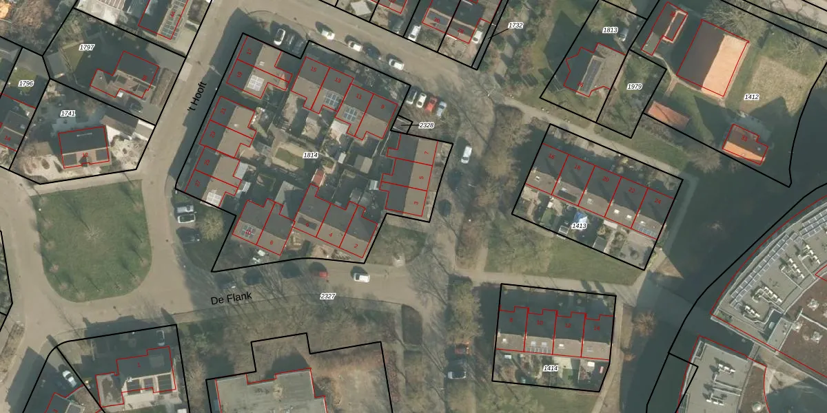 Het perceel waarop 't Hooft 3 staat heeft een oppervlakte van 2475 m². Dit is een zeer groot perceel. De perceeloppervlakte wordt geregistreerd door het Kadaster. Gedetailleerde informatie over de maten van dit perceel kunt u vinden in het rapport Kadastrale kaart met maatvoering van 't Hooft 3.