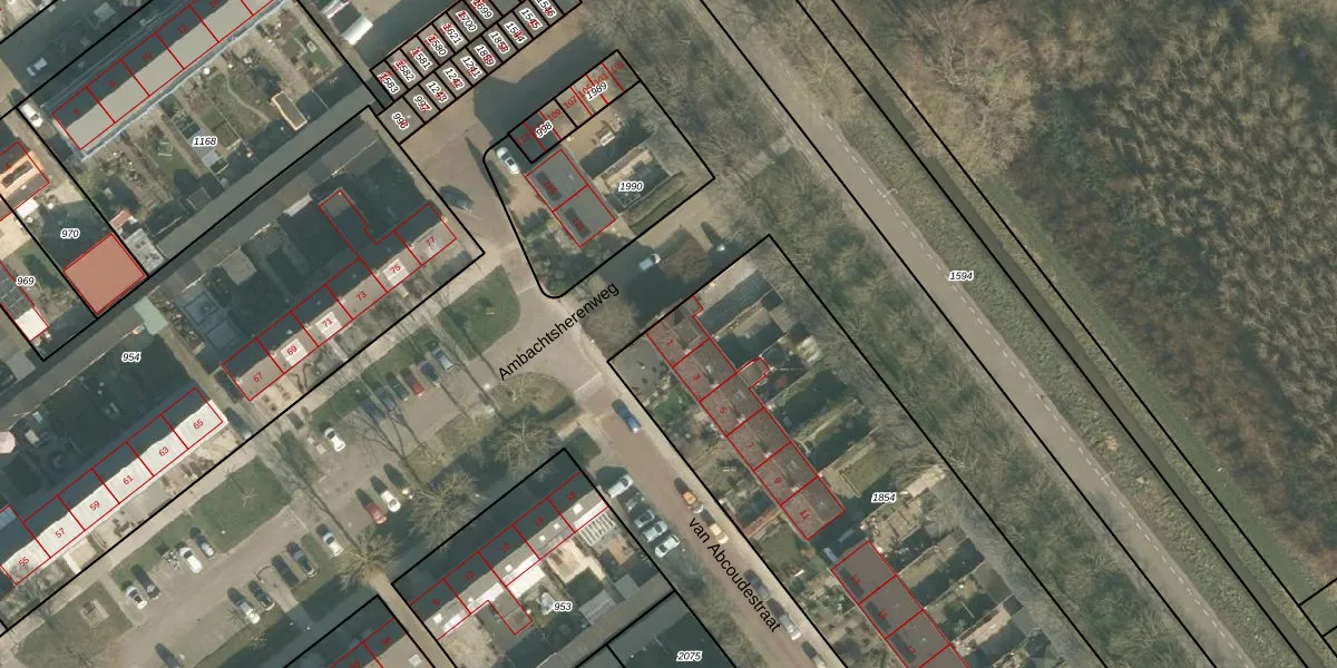 van Abcoudestraat 1 is gelegen op kadastraal perceel KDT00B1854. Deze kadastrale aanduiding is uniek en wordt gebruikt door het Kadaster om eigendomsrechten en andere zakelijke rechten vast te leggen. Het perceel maakt onderdeel uit van de kadastrale gemeente Klundert.