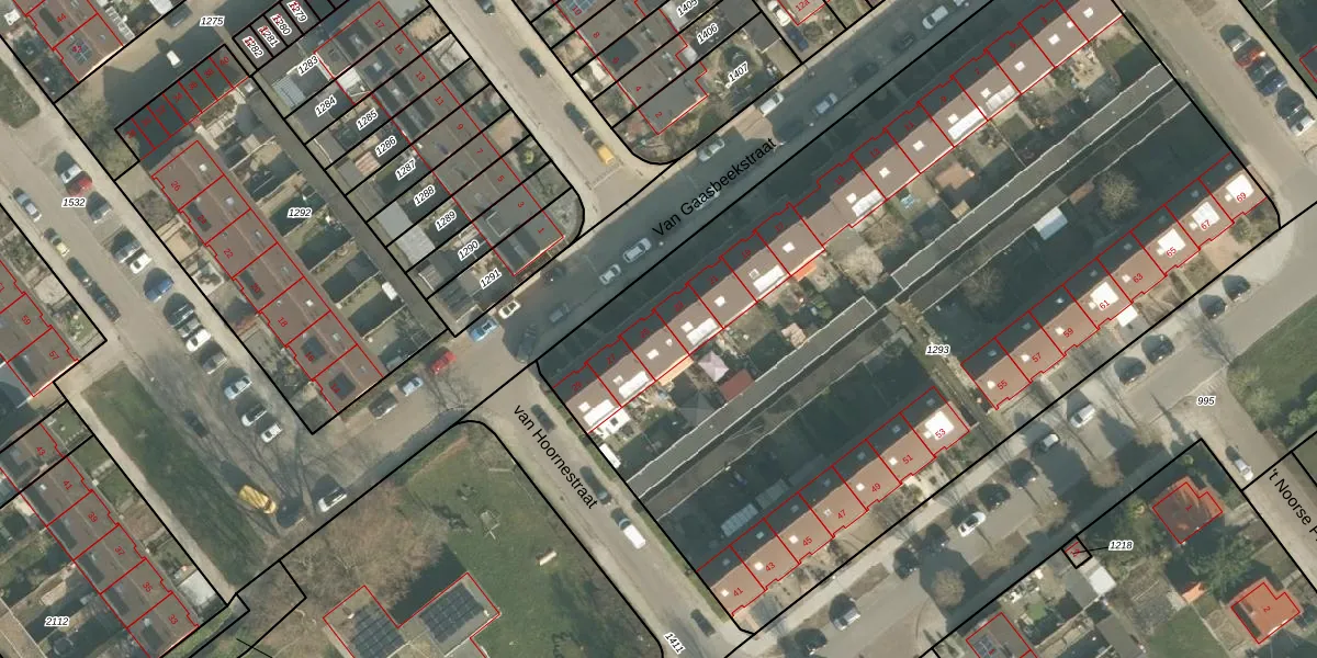Het perceel waarop Van Gaasbeekstraat 25 staat heeft een oppervlakte van 5625 m². Dit is een zeer groot perceel. De perceeloppervlakte wordt geregistreerd door het Kadaster. Gedetailleerde informatie over de maten van dit perceel kunt u vinden in het rapport Kadastrale kaart met maatvoering van Van Gaasbeekstraat 25.