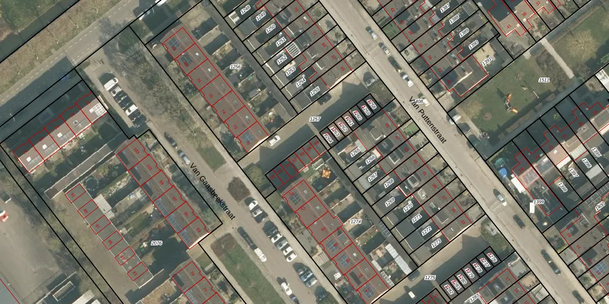 Het perceel waarop Van Gaasbeekstraat 64 staat heeft een oppervlakte van 1400 m². Dit is een zeer groot perceel. De perceeloppervlakte wordt geregistreerd door het Kadaster. Gedetailleerde informatie over de maten van dit perceel kunt u vinden in het rapport Kadastrale kaart met maatvoering van Van Gaasbeekstraat 64.