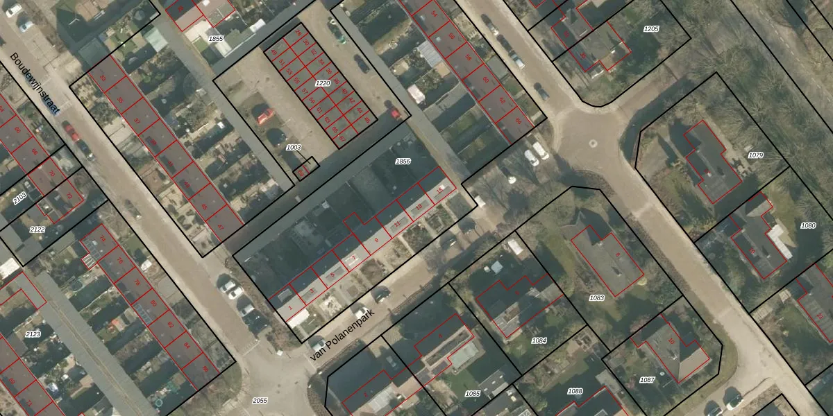 van Polanenpark 13 is gelegen op kadastraal perceel KDT00B1856. Deze kadastrale aanduiding is uniek en wordt gebruikt door het Kadaster om eigendomsrechten en andere zakelijke rechten vast te leggen. Het perceel maakt onderdeel uit van de kadastrale gemeente Klundert.