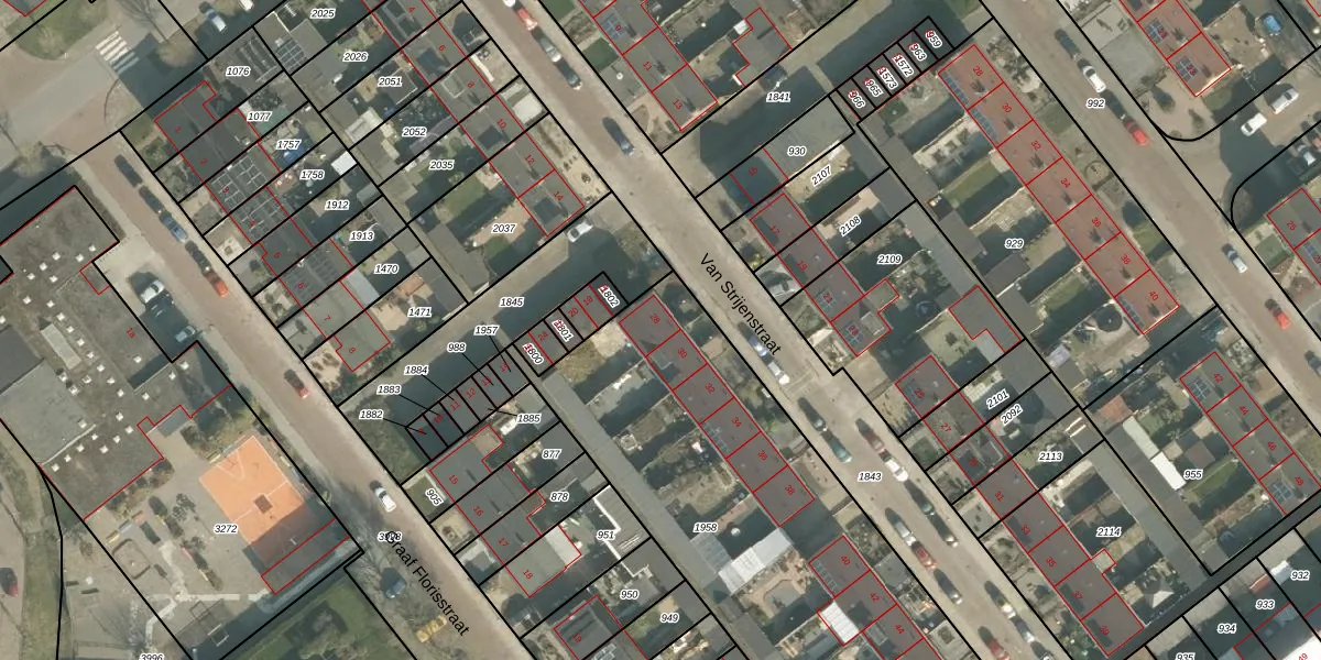 Het perceel waarop Van Strijenstraat 28 staat heeft een oppervlakte van 2518 m². Dit is een zeer groot perceel. De perceeloppervlakte wordt geregistreerd door het Kadaster. Gedetailleerde informatie over de maten van dit perceel kunt u vinden in het rapport Kadastrale kaart met maatvoering van Van Strijenstraat 28.