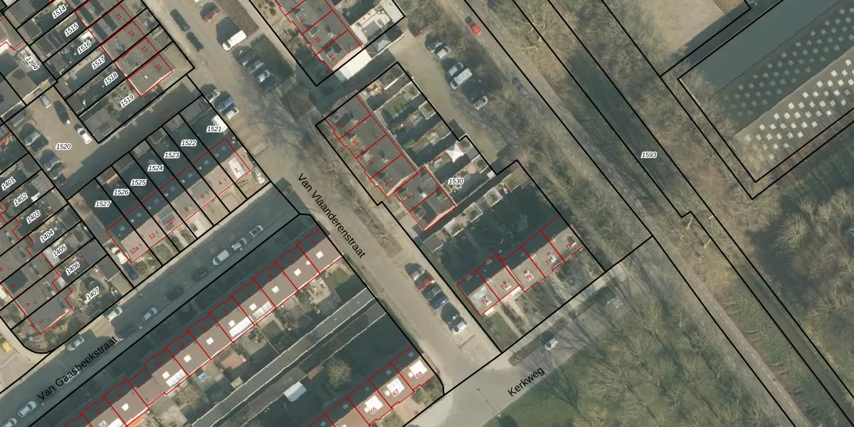 Van Vlaanderenstraat 2 is gelegen op kadastraal perceel KDT00B1530. Deze kadastrale aanduiding is uniek en wordt gebruikt door het Kadaster om eigendomsrechten en andere zakelijke rechten vast te leggen. Het perceel maakt onderdeel uit van de kadastrale gemeente Klundert.