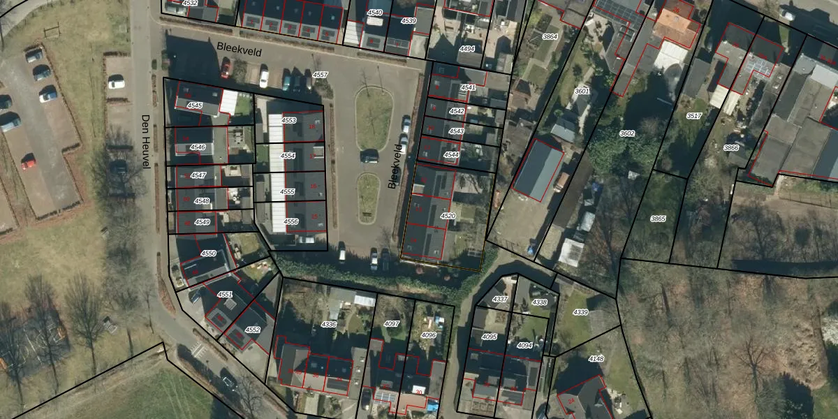 Het perceel waarop Bleekveld 13 staat heeft een oppervlakte van 453 m². Dit is een groot perceel. De perceeloppervlakte wordt geregistreerd door het Kadaster. Gedetailleerde informatie over de maten van dit perceel kunt u vinden in het rapport Kadastrale kaart met maatvoering van Bleekveld 13.