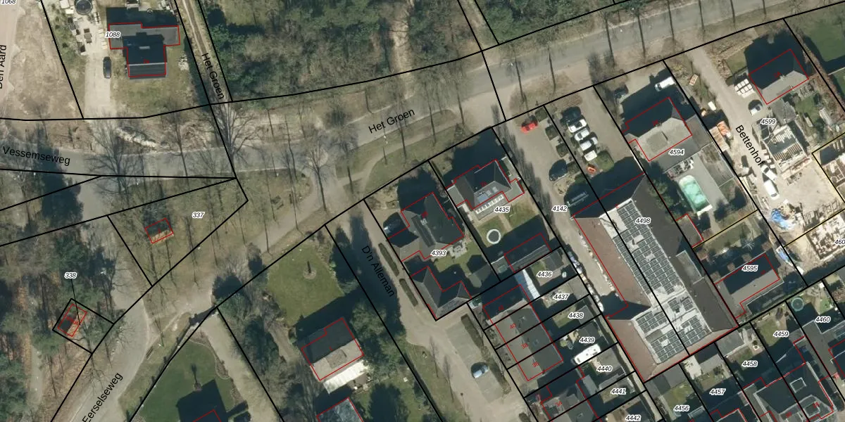 Het Groen 2-B is gelegen op kadastraal perceel VSM01F4393. Deze kadastrale aanduiding is uniek en wordt gebruikt door het Kadaster om eigendomsrechten en andere zakelijke rechten vast te leggen. Het perceel maakt onderdeel uit van de kadastrale gemeente Vessem.