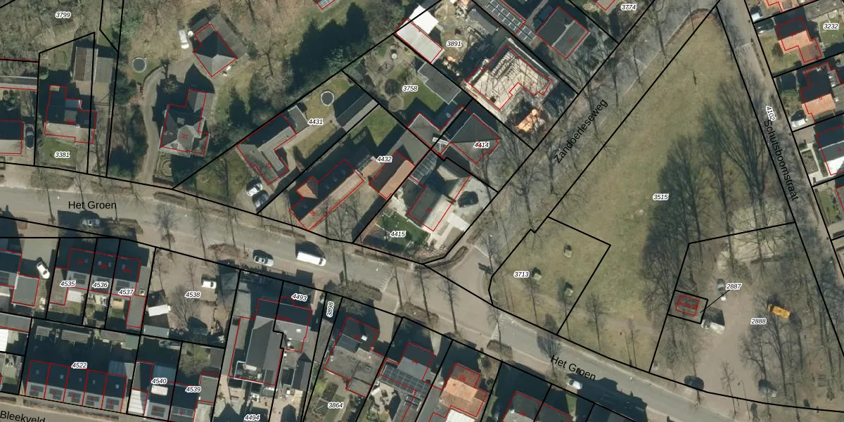 Het perceel waarop Het Groen 37 staat heeft een oppervlakte van 493 m². Dit is een groot perceel. De perceeloppervlakte wordt geregistreerd door het Kadaster. Gedetailleerde informatie over de maten van dit perceel kunt u vinden in het rapport Kadastrale kaart met maatvoering van Het Groen 37.