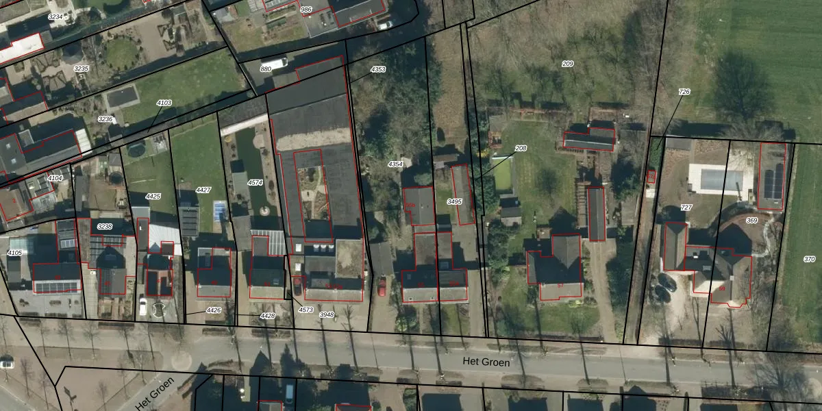 Het Groen 55-b is gelegen op kadastraal perceel VSM01F4354. Deze kadastrale aanduiding is uniek en wordt gebruikt door het Kadaster om eigendomsrechten en andere zakelijke rechten vast te leggen. Het perceel maakt onderdeel uit van de kadastrale gemeente Vessem.
