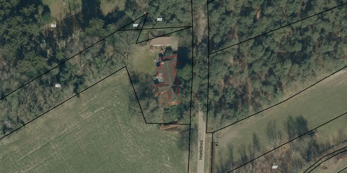 Het perceel waarop Hoekdries 4 staat heeft een oppervlakte van 3745 m². Dit is een zeer groot perceel. De perceeloppervlakte wordt geregistreerd door het Kadaster. Gedetailleerde informatie over de maten van dit perceel kunt u vinden in het rapport Kadastrale kaart met maatvoering van Hoekdries 4.