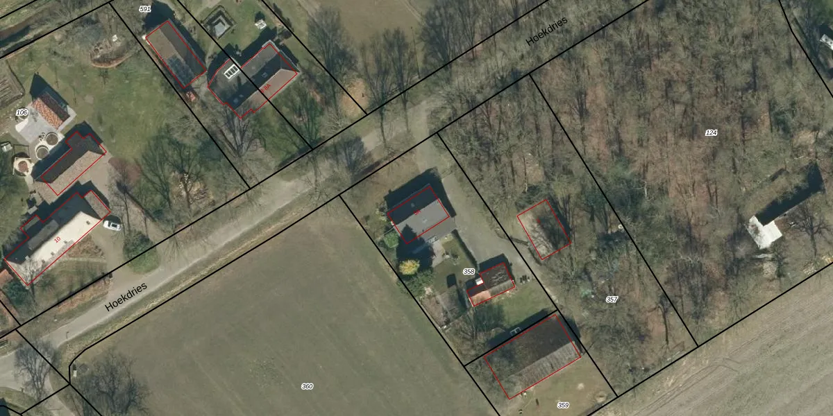 Hoekdries 5-A is gelegen op kadastraal perceel VSM01M358. Deze kadastrale aanduiding is uniek en wordt gebruikt door het Kadaster om eigendomsrechten en andere zakelijke rechten vast te leggen. Het perceel maakt onderdeel uit van de kadastrale gemeente Vessem.