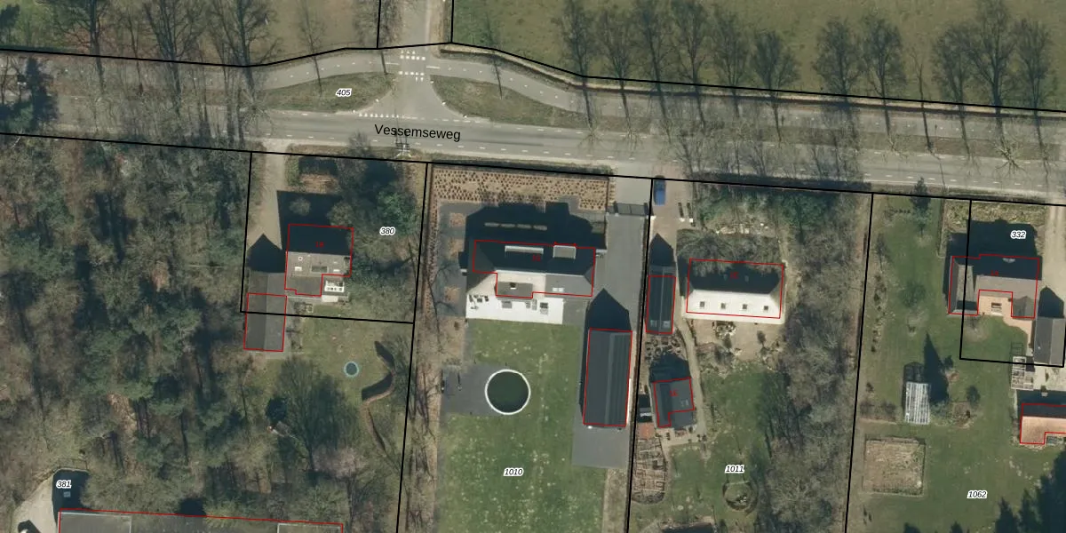Vessemseweg 1-G is gelegen op kadastraal perceel VSM01M1010. Deze kadastrale aanduiding is uniek en wordt gebruikt door het Kadaster om eigendomsrechten en andere zakelijke rechten vast te leggen. Het perceel maakt onderdeel uit van de kadastrale gemeente Vessem.