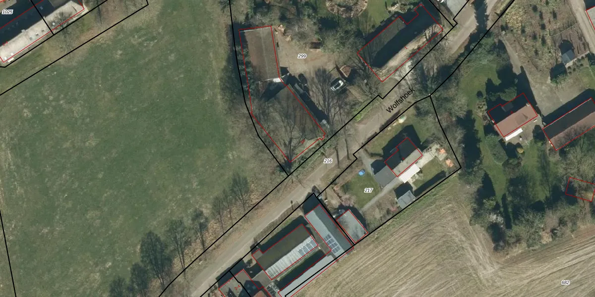 Het perceel waarop Wolfshoek 1-a staat heeft een oppervlakte van 3720 m². Dit is een zeer groot perceel. De perceeloppervlakte wordt geregistreerd door het Kadaster. Gedetailleerde informatie over de maten van dit perceel kunt u vinden in het rapport Kadastrale kaart met maatvoering van Wolfshoek 1-a.