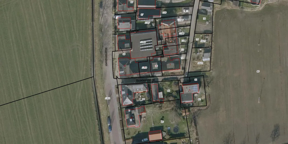 Gebruik de zoekbalk of klik op een perceel voor informatie over de adressen binnen dit perceel.