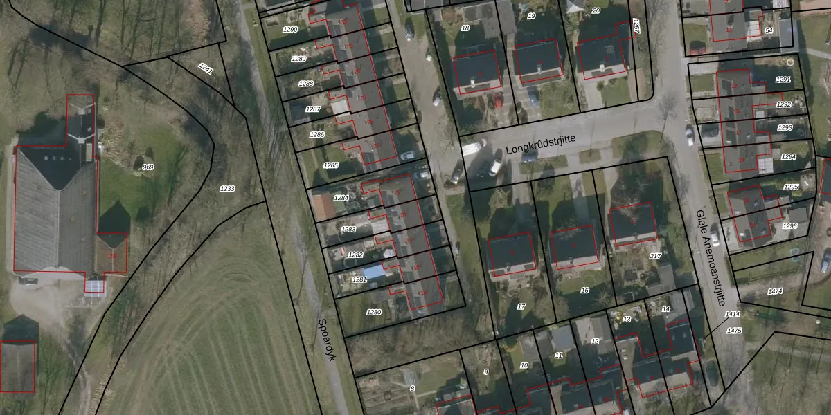 Het perceel waarop Longkrûdstrjitte 19 staat heeft een oppervlakte van 190 m². Dit is een middelgroot perceel. De perceeloppervlakte wordt geregistreerd door het Kadaster. Gedetailleerde informatie over de maten van dit perceel kunt u vinden in het rapport Kadastrale kaart met maatvoering van Longkrûdstrjitte 19.