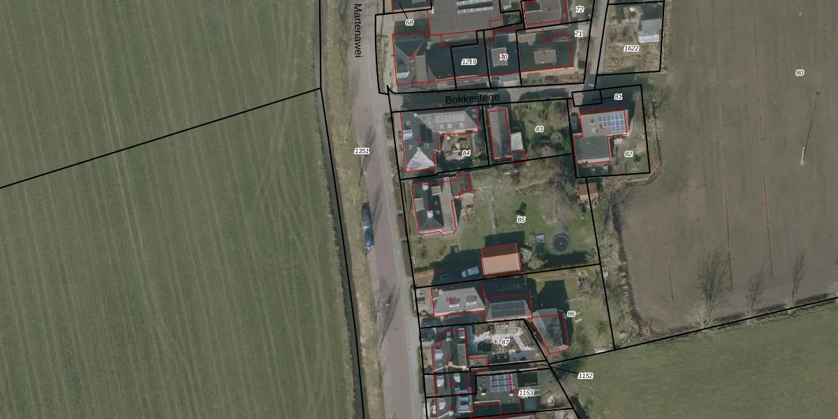 Het perceel waarop Martenawei 23 staat heeft een oppervlakte van 1167 m². Dit is een zeer groot perceel. De perceeloppervlakte wordt geregistreerd door het Kadaster. Gedetailleerde informatie over de maten van dit perceel kunt u vinden in het rapport Kadastrale kaart met maatvoering van Martenawei 23.