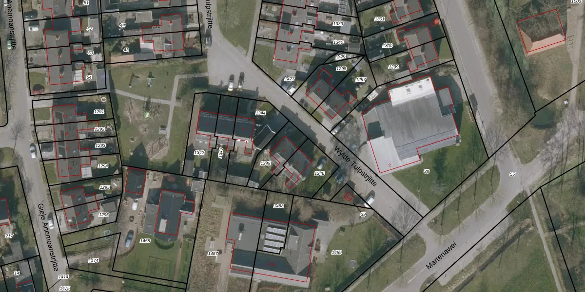 Gebruik de zoekbalk of klik op een perceel voor informatie over de adressen binnen dit perceel.