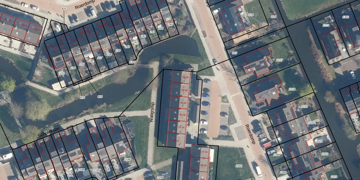 Het perceel waarop Roerdomp 34 staat heeft een oppervlakte van 1567 m². Dit is een zeer groot perceel. De perceeloppervlakte wordt geregistreerd door het Kadaster. Gedetailleerde informatie over de maten van dit perceel kunt u vinden in het rapport Kadastrale kaart met maatvoering van Roerdomp 34.