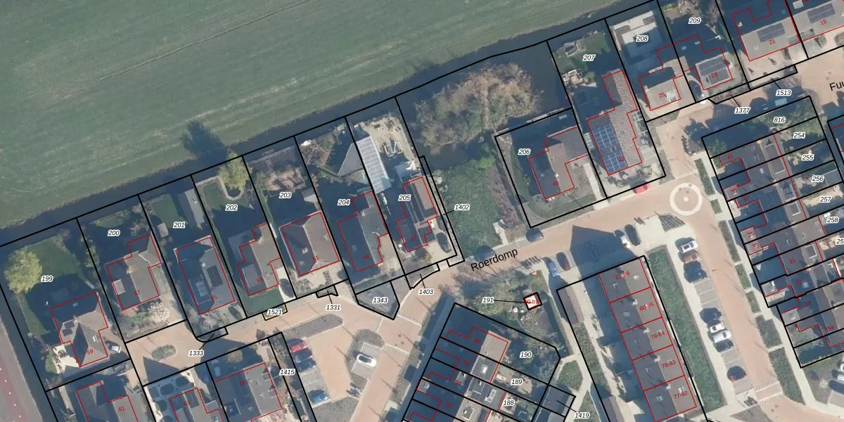 Roerdomp 47 is gelegen op kadastraal perceel KKG00E205. Deze kadastrale aanduiding is uniek en wordt gebruikt door het Kadaster om eigendomsrechten en andere zakelijke rechten vast te leggen. Het perceel maakt onderdeel uit van de kadastrale gemeente Kockengen.