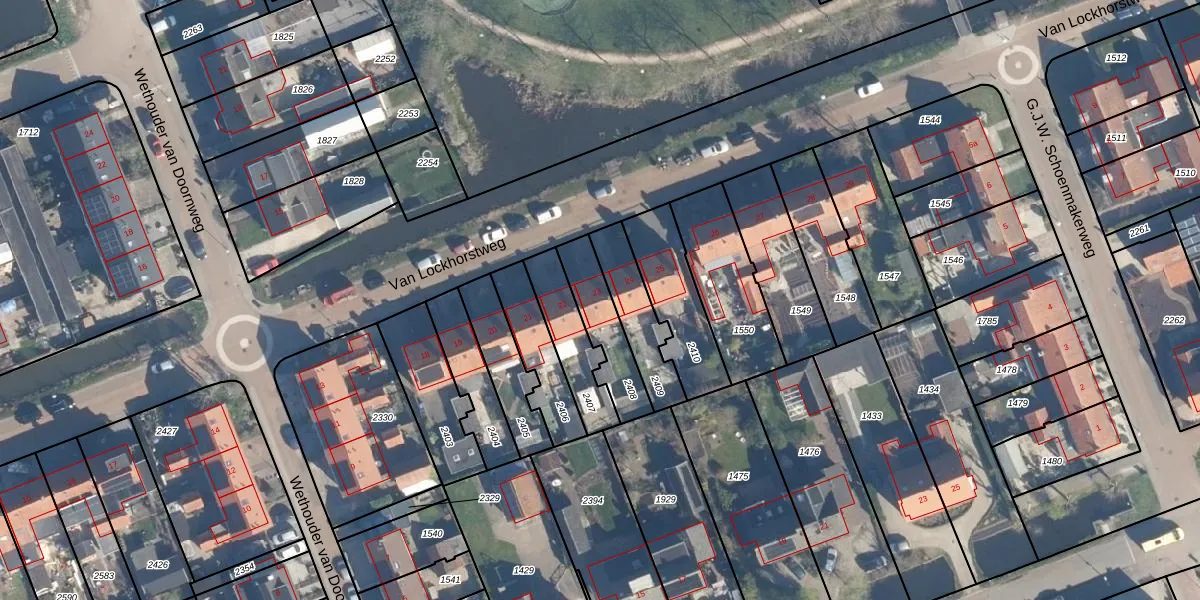 Van Lockhorstweg 23 is gelegen op kadastraal perceel KKG00F2408. Deze kadastrale aanduiding is uniek en wordt gebruikt door het Kadaster om eigendomsrechten en andere zakelijke rechten vast te leggen. Het perceel maakt onderdeel uit van de kadastrale gemeente Kockengen.