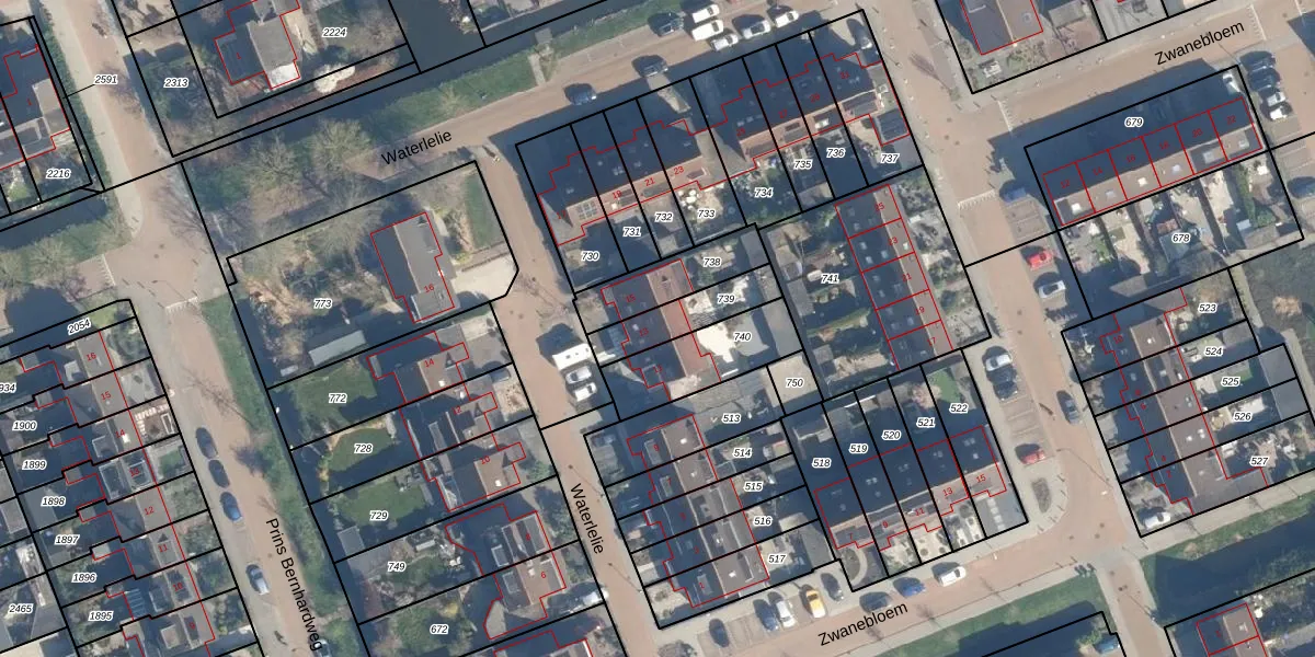 Gebruik de zoekbalk of klik op een perceel voor informatie over de adressen binnen dit perceel.