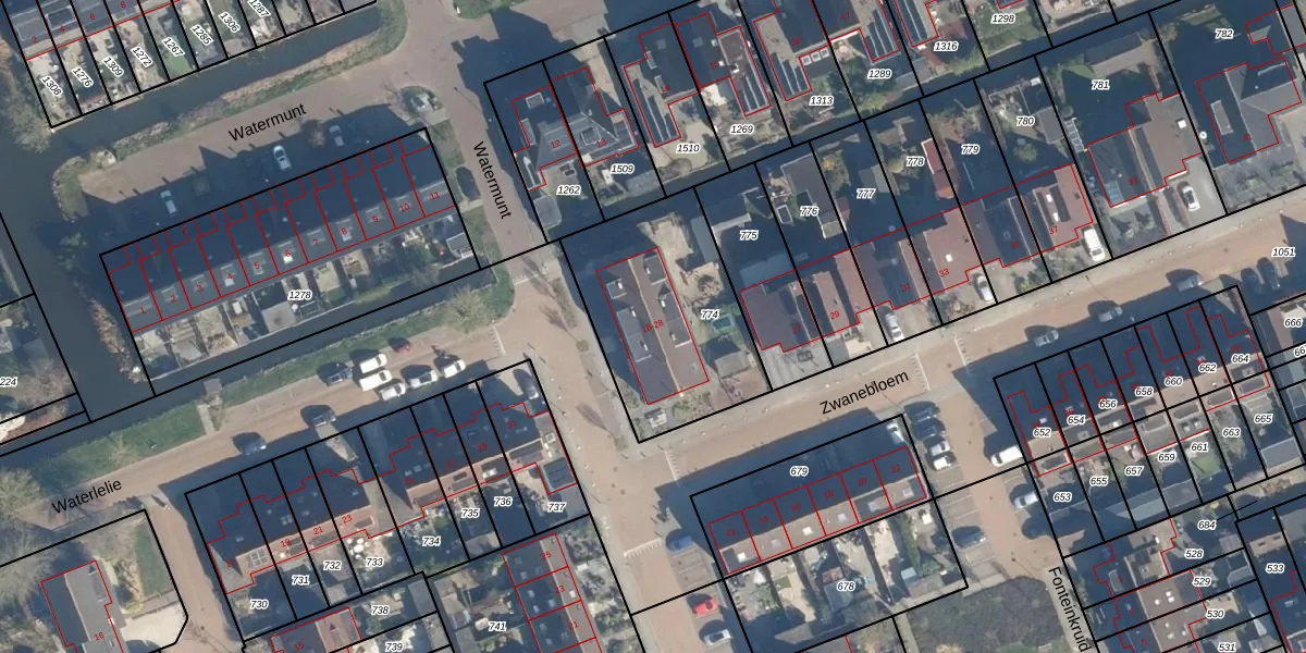 Het perceel waarop Waterlelie 24 staat heeft een oppervlakte van 737 m². Dit is een groot perceel. De perceeloppervlakte wordt geregistreerd door het Kadaster. Gedetailleerde informatie over de maten van dit perceel kunt u vinden in het rapport Kadastrale kaart met maatvoering van Waterlelie 24.