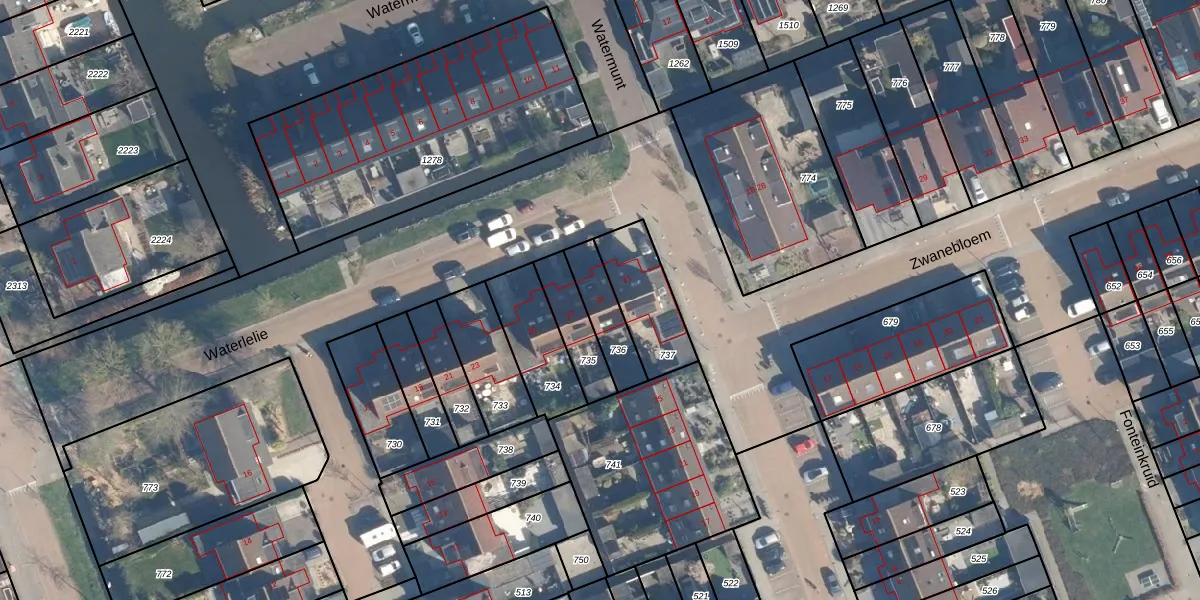 Gebruik de zoekbalk of klik op een perceel voor informatie over de adressen binnen dit perceel.