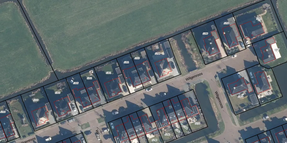 Het perceel waarop Wilgenroos 23 staat heeft een oppervlakte van 284 m². Dit is een middelgroot perceel. De perceeloppervlakte wordt geregistreerd door het Kadaster. Gedetailleerde informatie over de maten van dit perceel kunt u vinden in het rapport Kadastrale kaart met maatvoering van Wilgenroos 23.