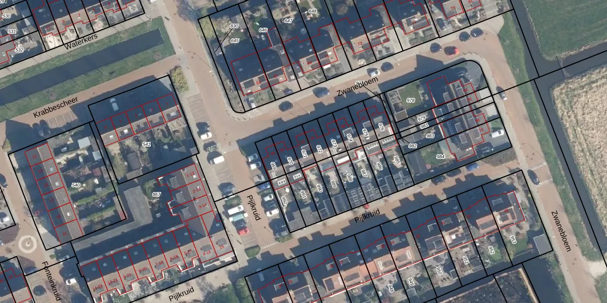 Het perceel waarop Zwanebloem 52 staat heeft een oppervlakte van 72 m². Dit is een klein perceel. De perceeloppervlakte wordt geregistreerd door het Kadaster. Gedetailleerde informatie over de maten van dit perceel kunt u vinden in het rapport Kadastrale kaart met maatvoering van Zwanebloem 52.
