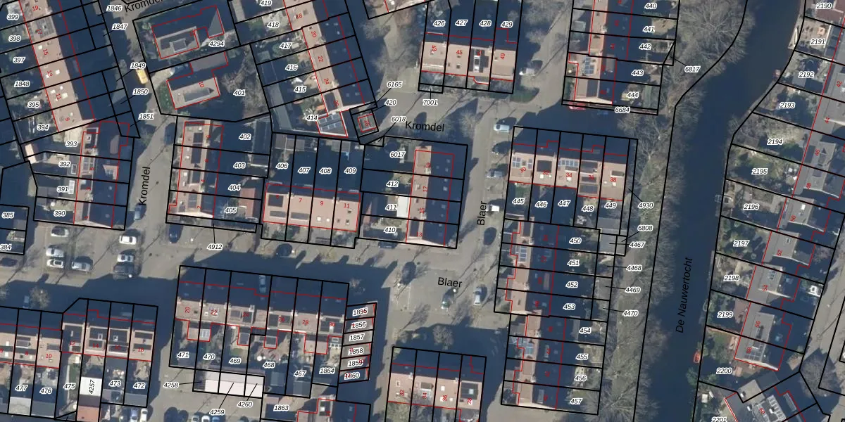 Gebruik de zoekbalk of klik op een perceel voor informatie over de adressen binnen dit perceel.