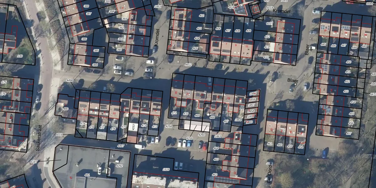 Gebruik de zoekbalk of klik op een perceel voor informatie over de adressen binnen dit perceel.