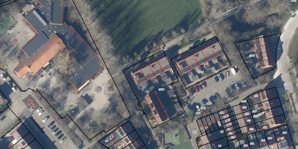 Het perceel waarop Boszool 15 staat heeft een oppervlakte van 1206 m². Dit is een zeer groot perceel. De perceeloppervlakte wordt geregistreerd door het Kadaster. Gedetailleerde informatie over de maten van dit perceel kunt u vinden in het rapport Kadastrale kaart met maatvoering van Boszool 15.