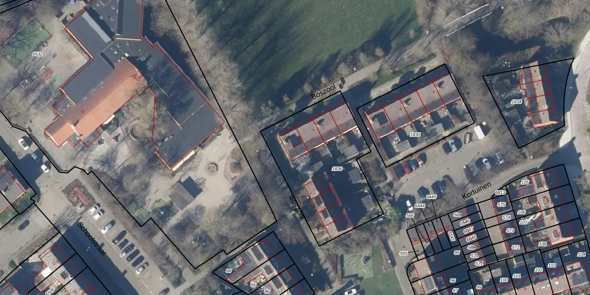 Het perceel waarop Boszool 17 staat heeft een oppervlakte van 1206 m². Dit is een zeer groot perceel. De perceeloppervlakte wordt geregistreerd door het Kadaster. Gedetailleerde informatie over de maten van dit perceel kunt u vinden in het rapport Kadastrale kaart met maatvoering van Boszool 17.