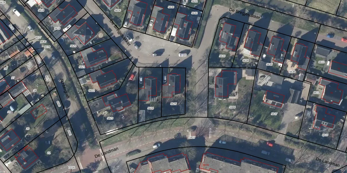 Het perceel waarop De Bregjesakker 1 staat heeft een oppervlakte van 372 m². Dit is een groot perceel. De perceeloppervlakte wordt geregistreerd door het Kadaster. Gedetailleerde informatie over de maten van dit perceel kunt u vinden in het rapport Kadastrale kaart met maatvoering van De Bregjesakker 1.