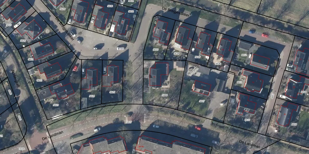 Gebruik de zoekbalk of klik op een perceel voor informatie over de adressen binnen dit perceel.