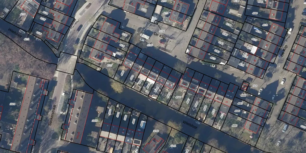 Gebruik de zoekbalk of klik op een perceel voor informatie over de adressen binnen dit perceel.