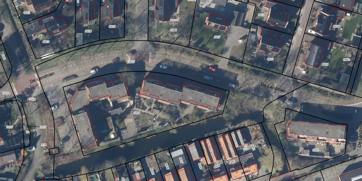 Het perceel waarop De Landman 44 staat heeft een oppervlakte van 2723 m². Dit is een zeer groot perceel. De perceeloppervlakte wordt geregistreerd door het Kadaster. Gedetailleerde informatie over de maten van dit perceel kunt u vinden in het rapport Kadastrale kaart met maatvoering van De Landman 44.