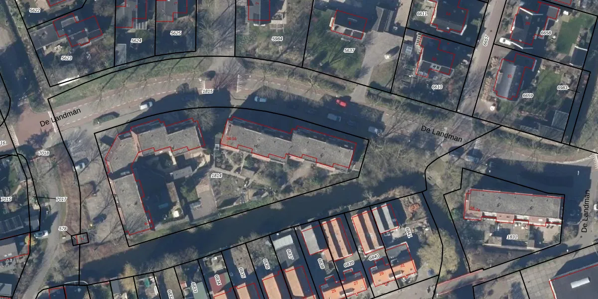 Het perceel waarop De Landman 46 staat heeft een oppervlakte van 2723 m². Dit is een zeer groot perceel. De perceeloppervlakte wordt geregistreerd door het Kadaster. Gedetailleerde informatie over de maten van dit perceel kunt u vinden in het rapport Kadastrale kaart met maatvoering van De Landman 46.