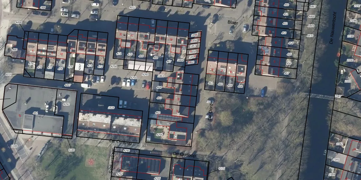 Gebruik de zoekbalk of klik op een perceel voor informatie over de adressen binnen dit perceel.