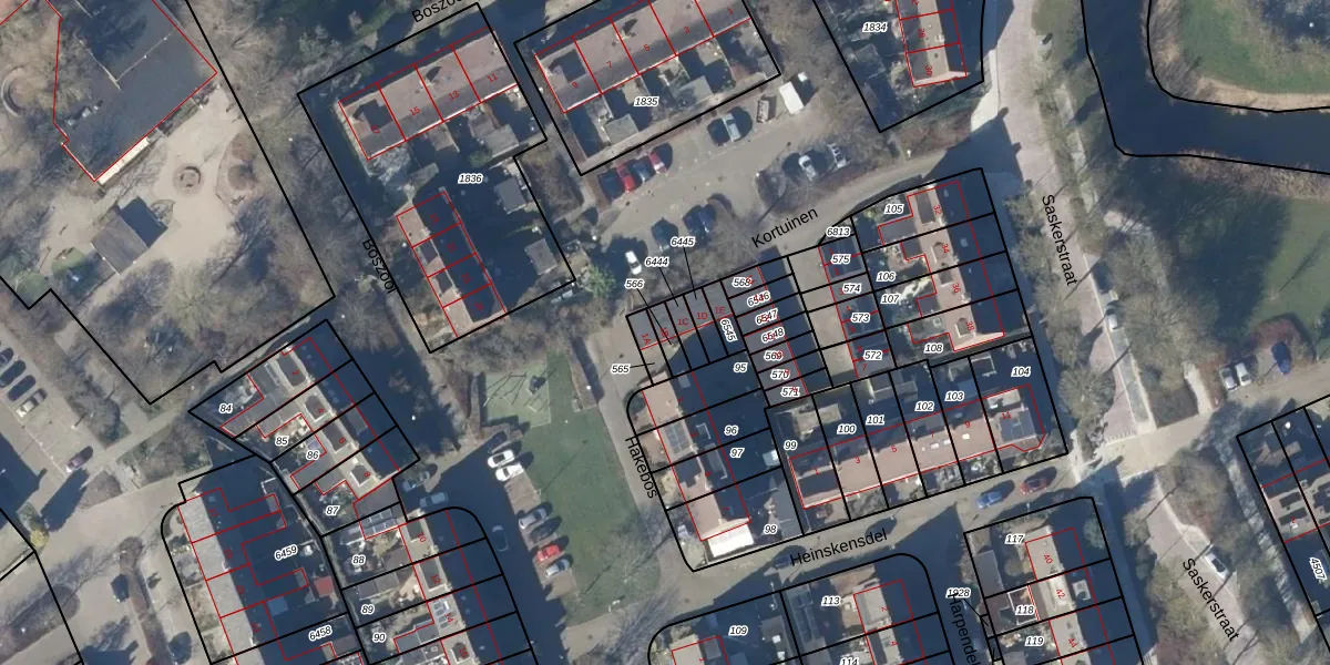 Gebruik de zoekbalk of klik op een perceel voor informatie over de adressen binnen dit perceel.