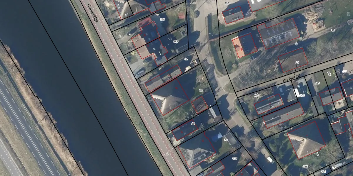 Het perceel waarop Kanaaldijk 18 staat heeft een oppervlakte van 825 m². Dit is een groot perceel. De perceeloppervlakte wordt geregistreerd door het Kadaster. Gedetailleerde informatie over de maten van dit perceel kunt u vinden in het rapport Kadastrale kaart met maatvoering van Kanaaldijk 18.