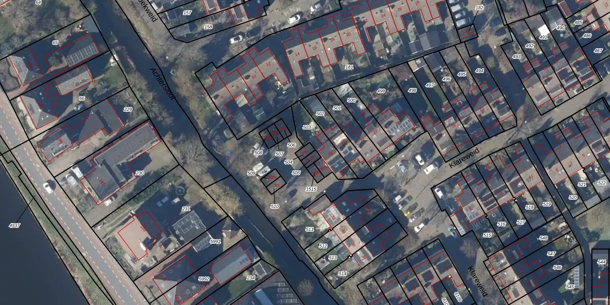 Het perceel waarop Klareweid 30-D staat heeft een oppervlakte van 19 m². Dit is een klein perceel. De perceeloppervlakte wordt geregistreerd door het Kadaster. Gedetailleerde informatie over de maten van dit perceel kunt u vinden in het rapport Kadastrale kaart met maatvoering van Klareweid 30-D.
