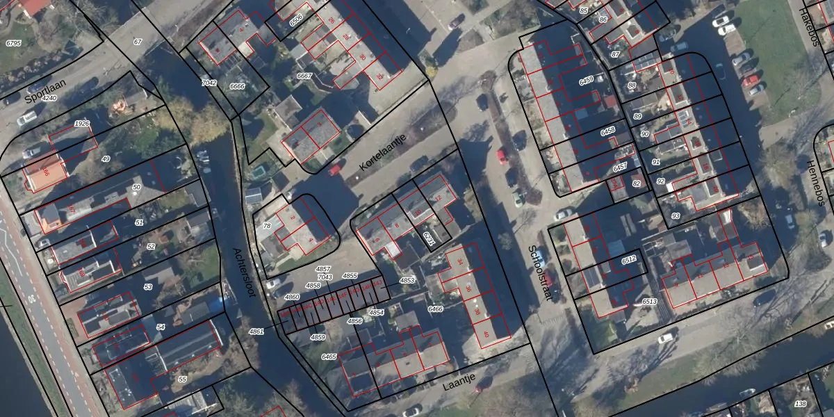 Gebruik de zoekbalk of klik op een perceel voor informatie over de adressen binnen dit perceel.