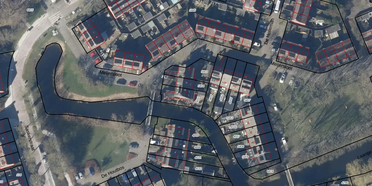 Gebruik de zoekbalk of klik op een perceel voor informatie over de adressen binnen dit perceel.