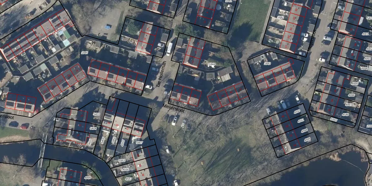 Het perceel waarop Meijersloot 37 staat heeft een oppervlakte van 1329 m². Dit is een zeer groot perceel. De perceeloppervlakte wordt geregistreerd door het Kadaster. Gedetailleerde informatie over de maten van dit perceel kunt u vinden in het rapport Kadastrale kaart met maatvoering van Meijersloot 37.