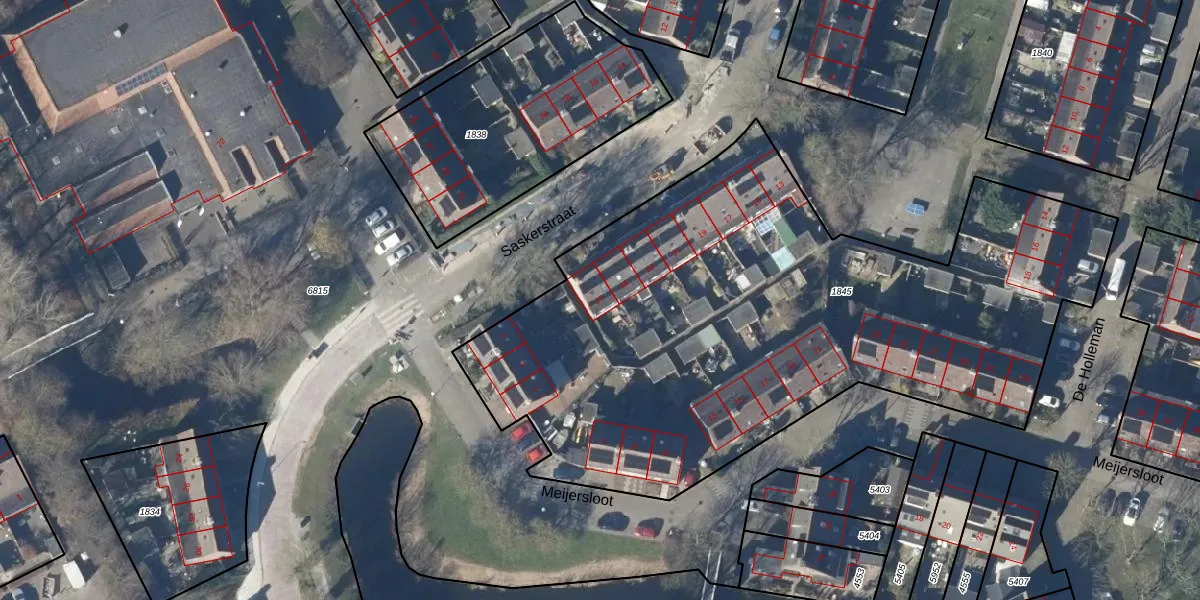 Het perceel waarop Saskerstraat 27 staat heeft een oppervlakte van 3627 m². Dit is een zeer groot perceel. De perceeloppervlakte wordt geregistreerd door het Kadaster. Gedetailleerde informatie over de maten van dit perceel kunt u vinden in het rapport Kadastrale kaart met maatvoering van Saskerstraat 27.