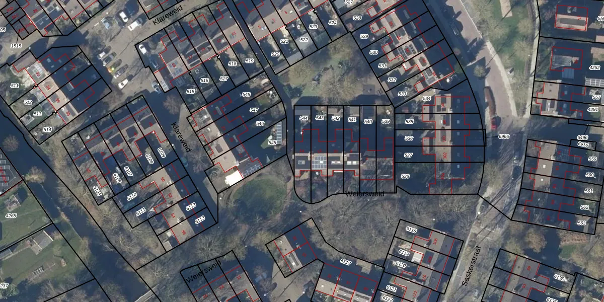 Gebruik de zoekbalk of klik op een perceel voor informatie over de adressen binnen dit perceel.