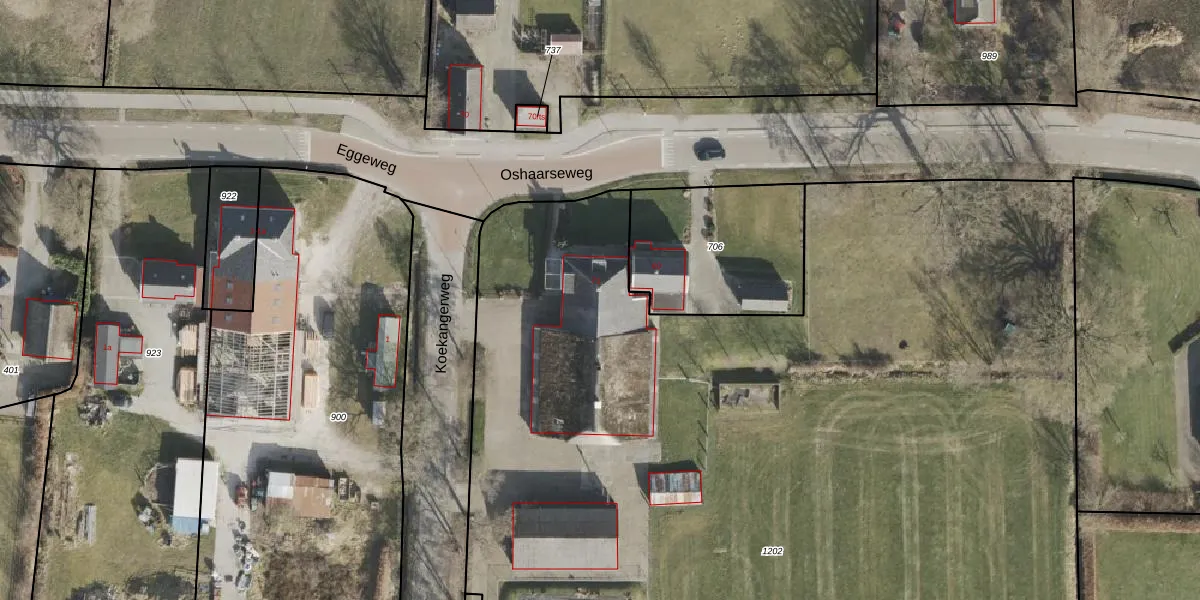 Het perceel waarop Oshaarseweg 71 staat heeft een oppervlakte van 1,2 ha. Dit is een zeer groot perceel. De perceeloppervlakte wordt geregistreerd door het Kadaster. Gedetailleerde informatie over de maten van dit perceel kunt u vinden in het rapport Kadastrale kaart met maatvoering van Oshaarseweg 71.
